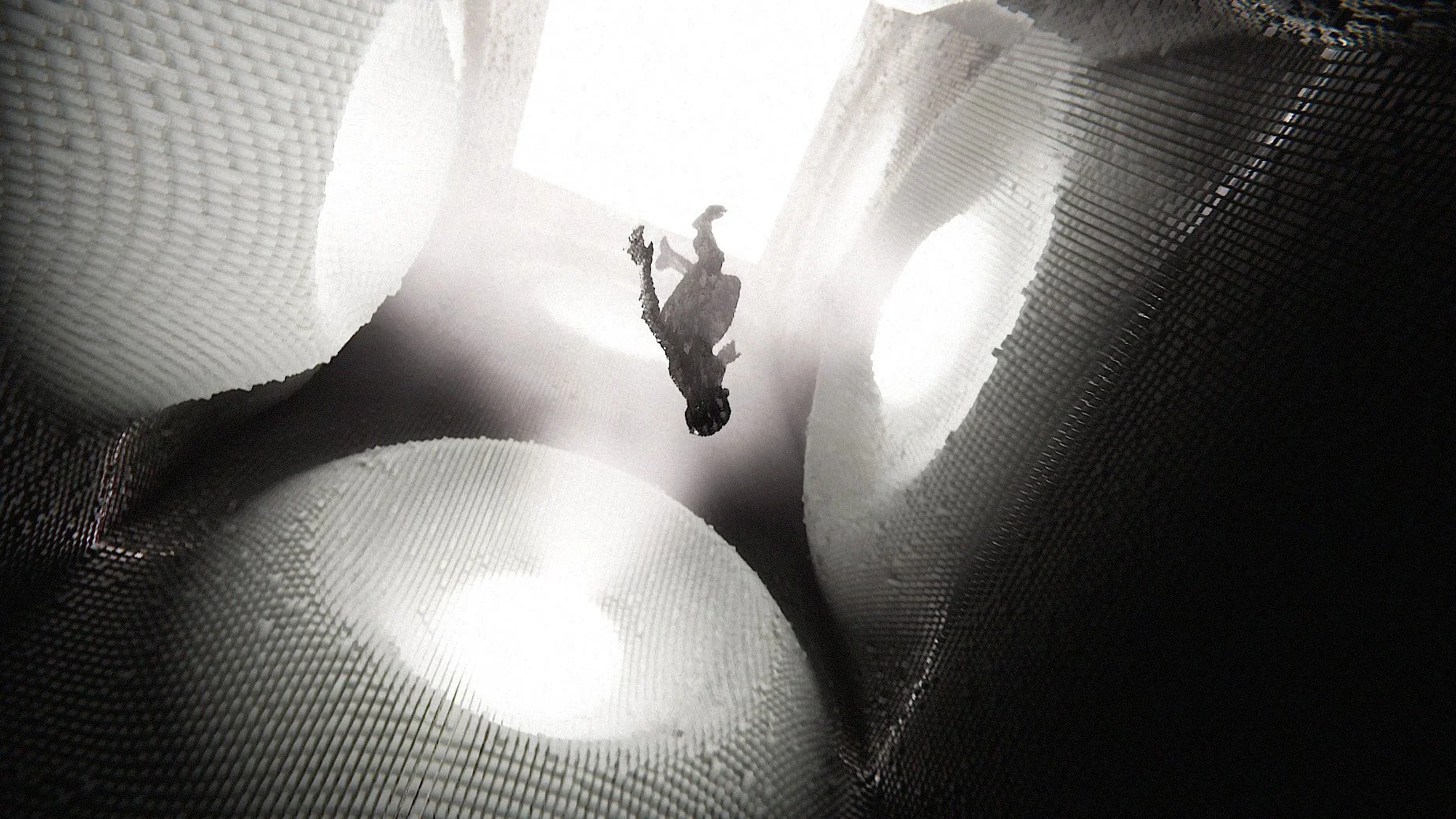 The idea for this piece is that the avatar is entering into the final stage before discovering consciousness. I wanted to evoke a feeling of mystery and sacredness. I used the Houdini shape generating pipeline I made in Phantom 7 to generate the elaborate dot/line patterns that lead the avatar into the descent of the environment. The patterns are based on the menger sponge fractal pattern.